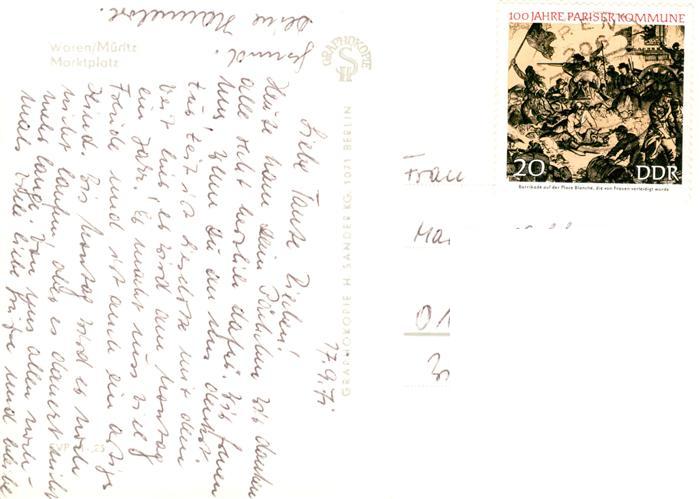 73873302 alte Postkarte Waren Mueritz Marktplatz postalisch gelaufen Erhaltung siehe scans [WerneD78] KatCode: 11110013056072