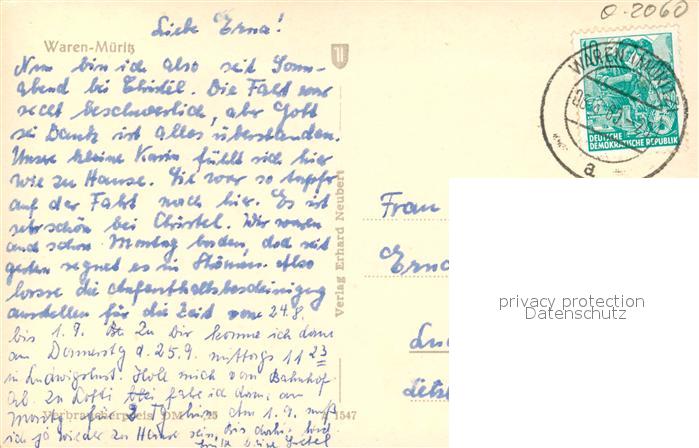 43369890 alte Postkarte Waren Mueritz Mueritzhoehe Bruecke Anleger Mecklenburgische Seenplatte postalisch gelaufen Erhaltung siehe scans [FriedD77] KatCode: 11110013056072