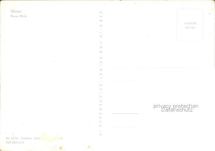 72109595 Waren Mueritz Neuer Markt postalisch nicht gelaufen Erhaltung siehe scans KatCode: 11110013056072
