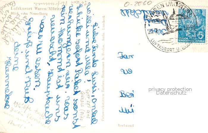 43369886 alte Postkarte Waren Mueritz Panorama Blick vom Nesselberg postalisch gelaufen Erhaltung siehe scans [FriedD77] KatCode: 11110013056072