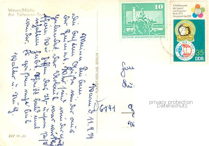 73751053 alte Postkarte Waren Mueritz Partie am Tiefwaren See postalisch gelaufen Erhaltung siehe scans [WerneD78] KatCode: 11110013056072