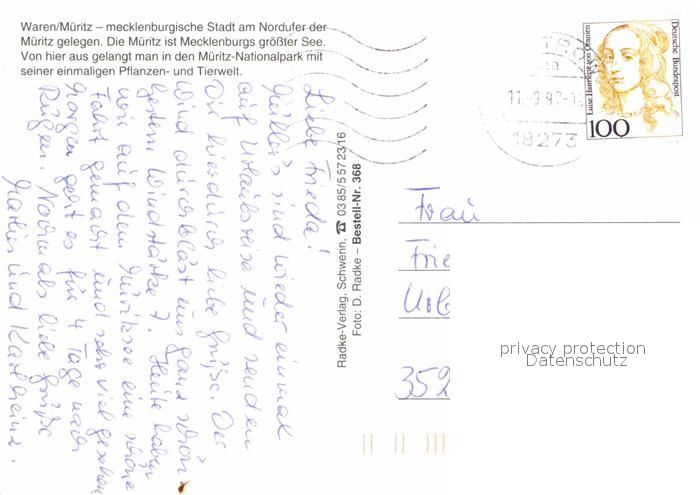 72877800 alte Postkarte Waren Mueritz StadtansichtenAgrarmuseum Alt Schwerin Schloss Klink Hotel Klink postalisch gelaufen Erhaltung siehe scans [AndreD76] KatCode: 11110013056072