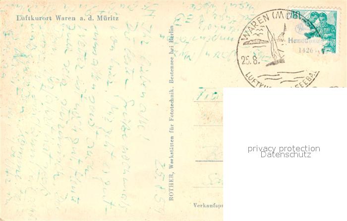 43369823 alte Postkarte Waren Mueritz Teilansichten Luftkurort Mecklenburgische Seenplatte Wappen postalisch gelaufen Erhaltung siehe scans [FriedD77] KatCode: 11110013056072