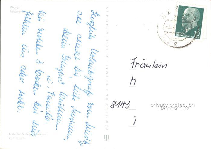 72123463 alte Postkarte Waren Mueritz Tiefwarensee postalisch gelaufen Erhaltung siehe scans KatCode: 11110013056072