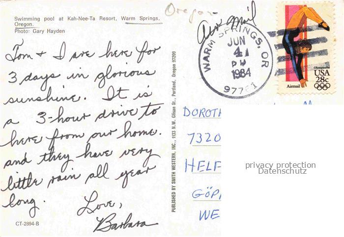 74092086 old postcard Warm Springs Oregon USA Swimming pool Kah Nee Ta Resort postalisch gelaufen Erhaltung siehe scans [IrynaD87] KatCode: 14140400000000