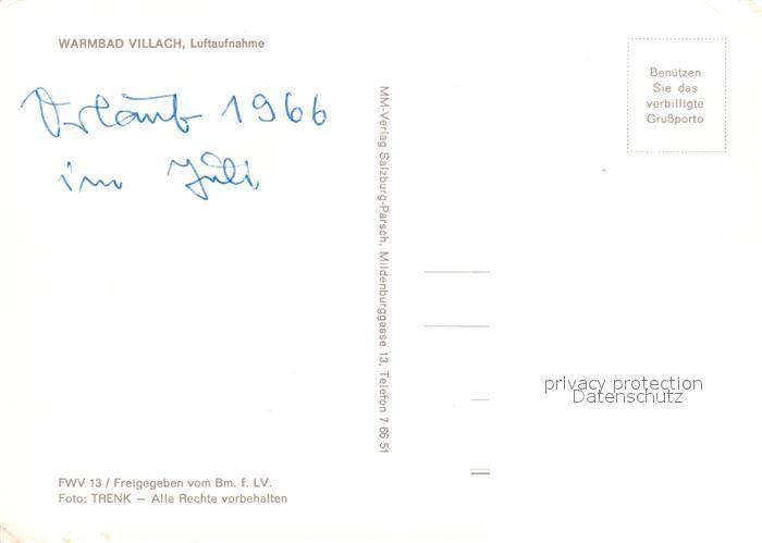 73157925 Warmbad Villach Fliegeraufnahme postalisch nicht gelaufen Erhaltung siehe scans [FriedD77] KatCode: 11390211020201