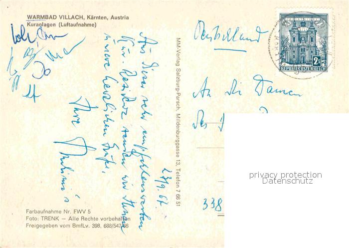 72886238 alte Postkarte Warmbad Villach Fliegeraufnahme Kuranlagen postalisch gelaufen Erhaltung siehe scans [LiesaD40] KatCode: 11390211020201