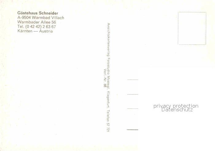 72731466 Warmbad Villach Gaestehaus Schneider postalisch nicht gelaufen Erhaltung siehe scans [AndreD76] KatCode: 11390211020201