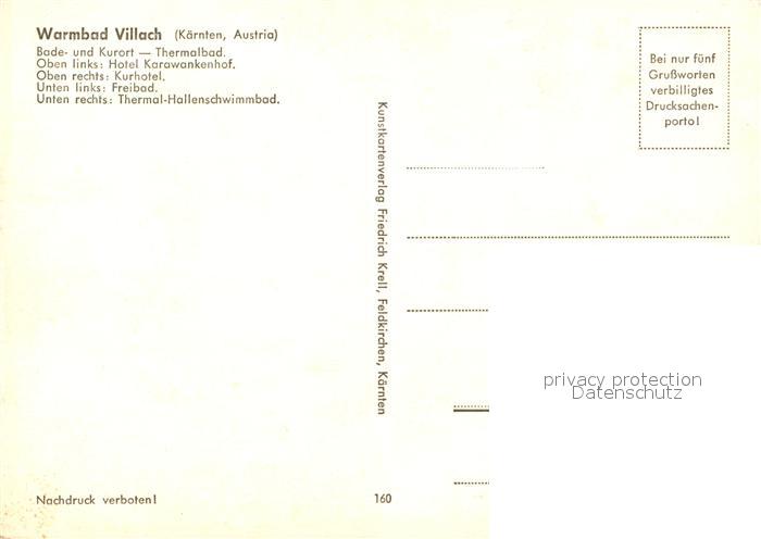 73235590 Warmbad Villach Karawankenhof Kurhotel Freibad Thermal Hallenschwimmbad postalisch nicht gelaufen Erhaltung siehe scans [WerneD78] KatCode: 11390211020201