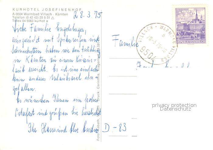 73325933 alte Postkarte Warmbad Villach Kurhotel Josefinenhof Winterimpressionen postalisch gelaufen Erhaltung siehe scans [FriedD77] KatCode: 11390211020201