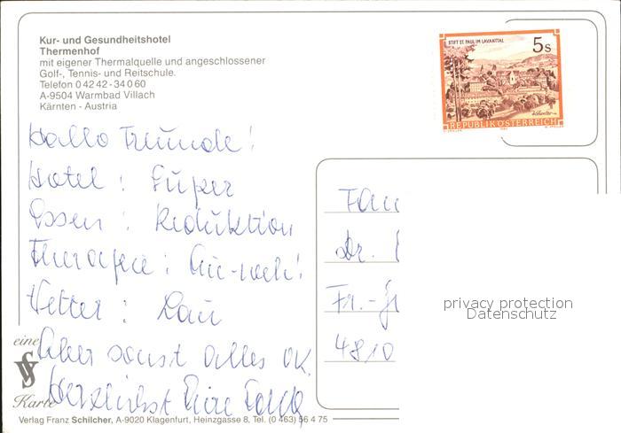 72419115 Warmbad Villach Kurhotel Thermenhof Swimming Pool postalisch nicht gelaufen Erhaltung siehe scans KatCode: 11390211020201