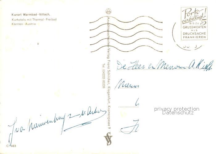 73526112 alte Postkarte Warmbad Villach Kurhotels mit Thermalfreibad Fliegeraufnahme postalisch gelaufen Erhaltung siehe scans [FriedD77] KatCode: 11390211020201
