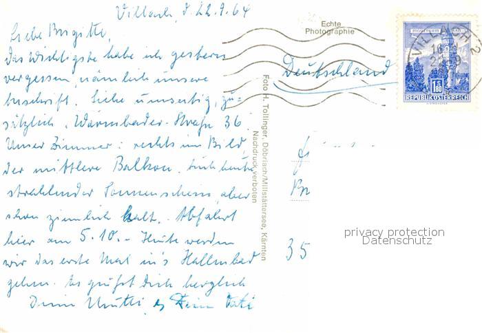 12742474 alte Postkarte Warmbad Villach Pension Haus Matthis postalisch gelaufen Erhaltung siehe scans [KathaD81] KatCode: 11390211020201