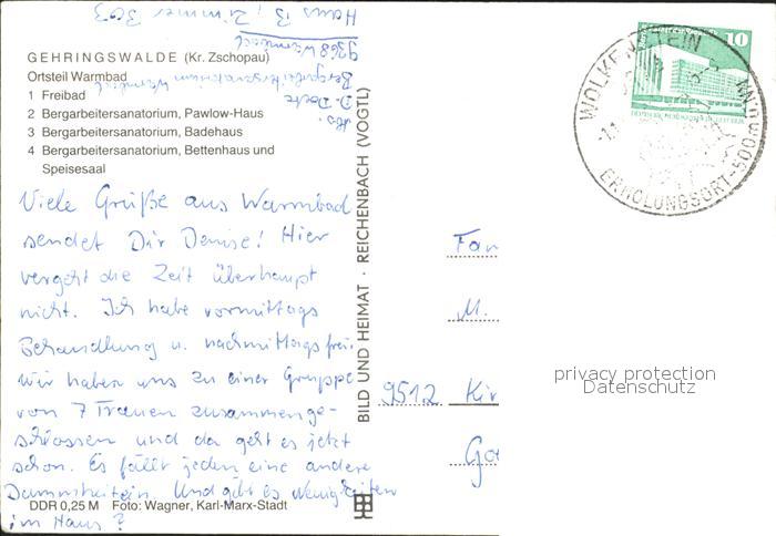 72329732 alte Postkarte Warmbad Wolkenstein Freibad Bergarbeitersanatorium Pawlow- Haus postalisch gelaufen Erhaltung siehe scans KatCode: 11110014181390