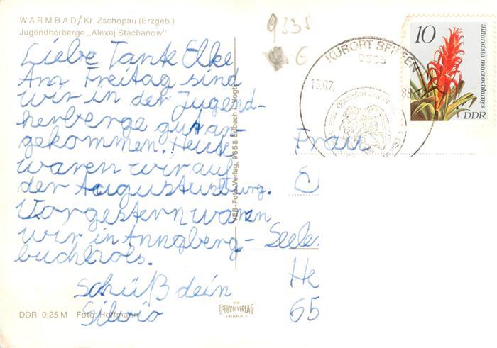 73907598 alte Postkarte Warmbad Wolkenstein Jugendherberge Alexej Stachanow postalisch gelaufen Erhaltung siehe scans [FriedD77] KatCode: 11110014181390