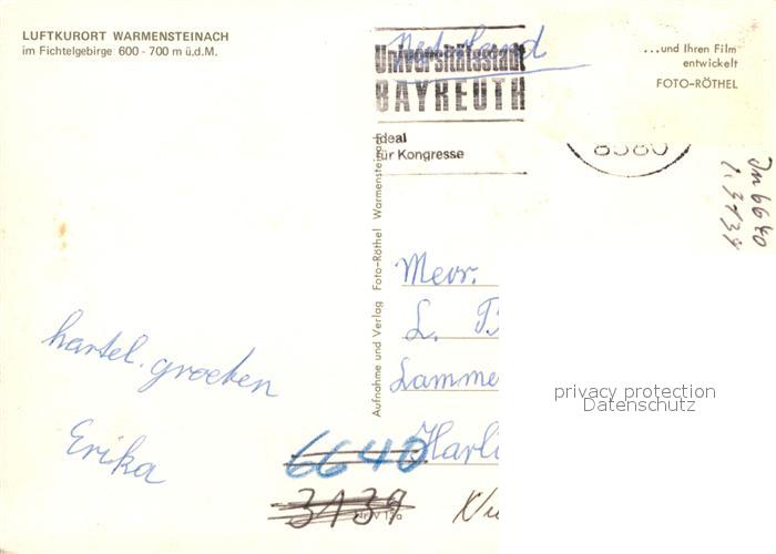 72949504 alte Postkarte Warmensteinach postalisch gelaufen Erhaltung siehe scans [NatalD47] KatCode: 11110009472198