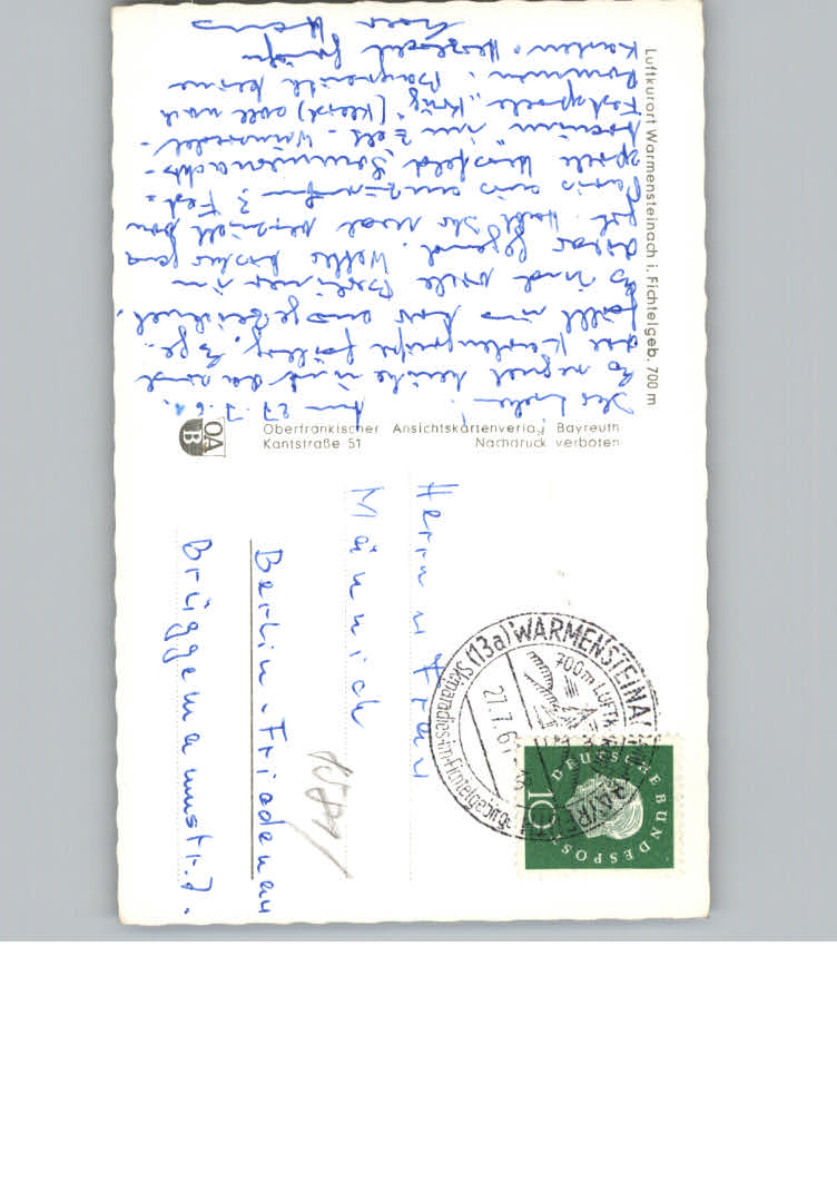 31170702 Warmensteinach postalisch nicht gelaufen KatCode: 11110009472198