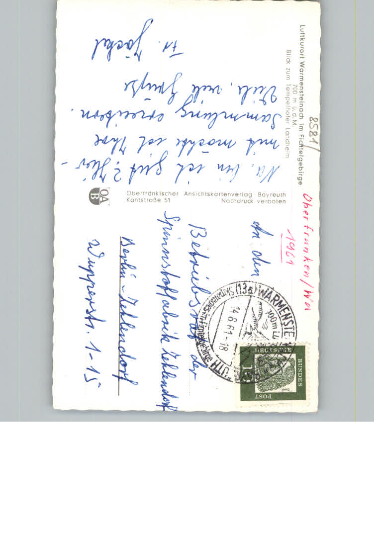 31162758 Warmensteinach postalisch nicht gelaufen KatCode: 11110009472198
