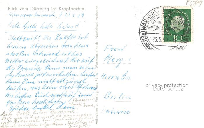 43361708 alte Postkarte Warmensteinach Blick vom Duerrberg ins Kropfbachtal postalisch gelaufen Erhaltung siehe scans [WerneD78] KatCode: 11110009472198