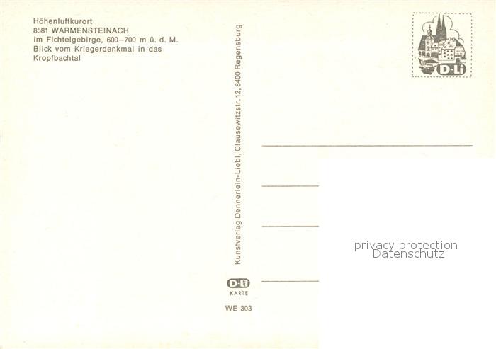 73258445 Warmensteinach Blick vom Kriegerdenkmal ins Kropfbachtal postalisch nicht gelaufen Erhaltung siehe scans [WerneD78] KatCode: 11110009472198