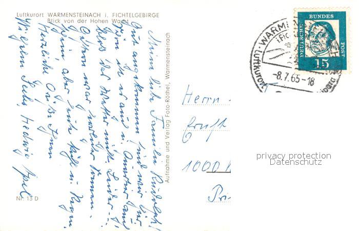 43361681 alte Postkarte Warmensteinach Blick von der Hohen Wand postalisch gelaufen Erhaltung siehe scans [WerneD78] KatCode: 11110009472198
