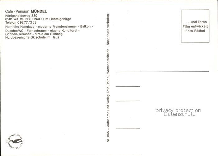 72411447 Warmensteinach Cafe Pension Muendel postalisch nicht gelaufen Erhaltung siehe scans KatCode: 11110009472198