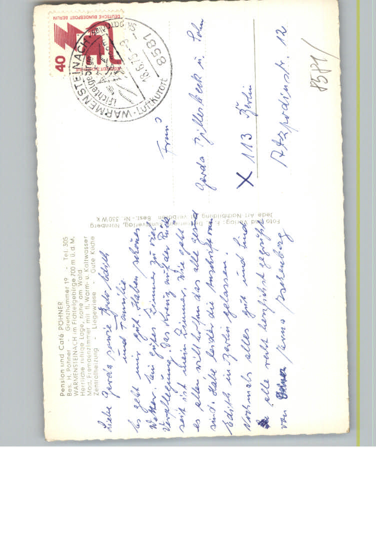31170410 Warmensteinach Cafe Pension Poehner postalisch nicht gelaufen KatCode: 11110009472198