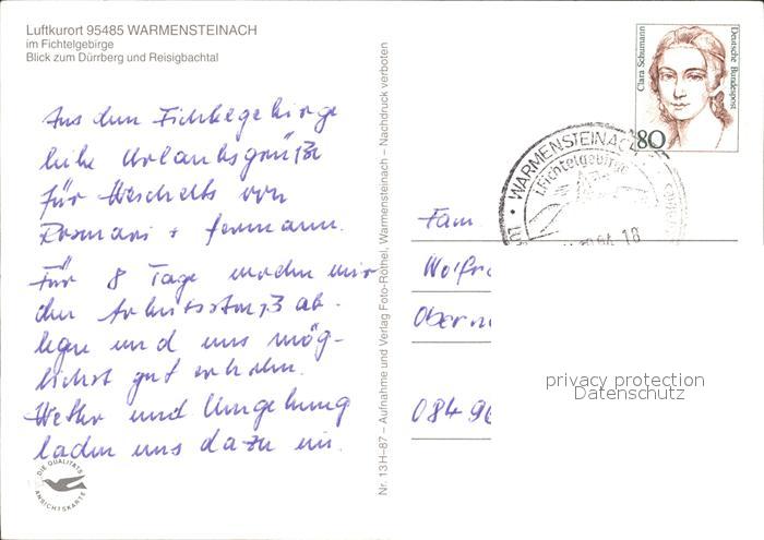 72382146 alte Postkarte Warmensteinach Duerrberg Reisigbachtal postalisch gelaufen Erhaltung siehe scans KatCode: 11110009472198