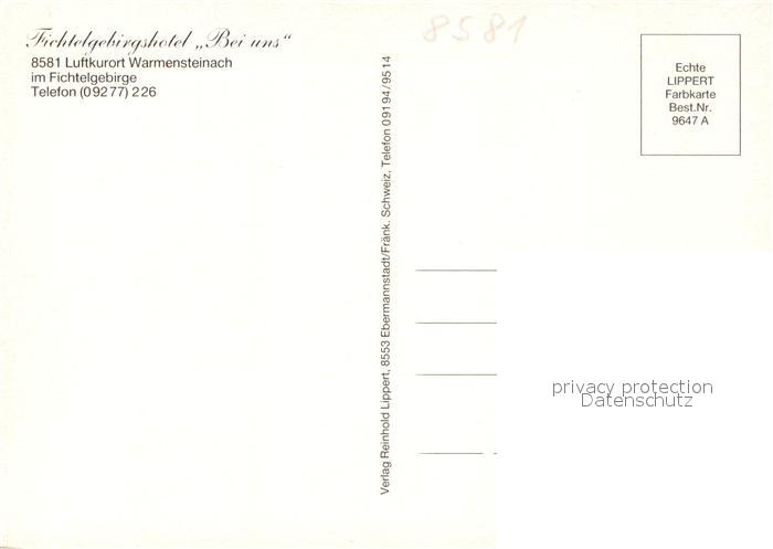 73088358 Warmensteinach Fichtelgebirgshotel Bei uns postalisch nicht gelaufen Erhaltung siehe scans [PaolaD17] KatCode: 11110009472198