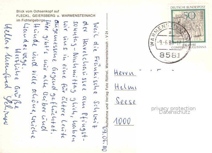 72901383 alte Postkarte Warmensteinach Fleckl. Geiersberg Fichtelgebirge postalisch gelaufen Erhaltung siehe scans [NatalD47] KatCode: 11110009472198