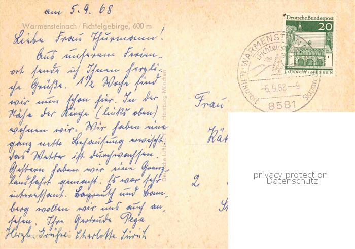 72849832 alte Postkarte Warmensteinach Fliegeraufnahme postalisch gelaufen Erhaltung siehe scans [NatalD47] KatCode: 11110009472198