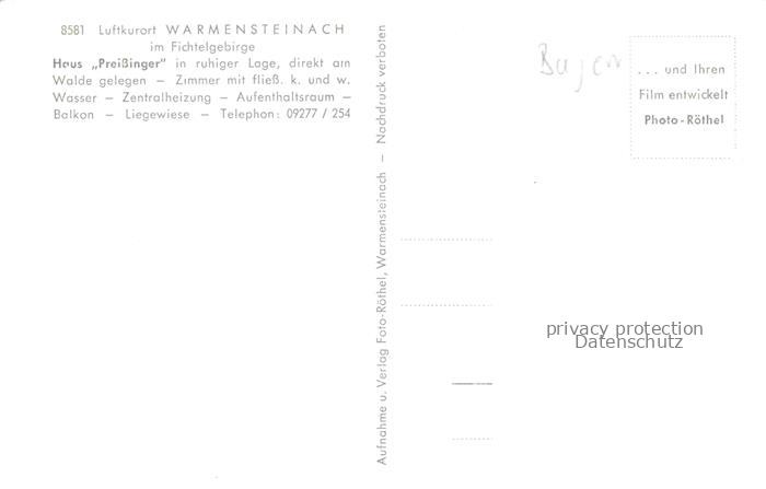 74043329 Warmensteinach Gaestehaus Haus Preissinger im Fichtelgebirge postalisch nicht gelaufen Erhaltung siehe scans [FriedD77] KatCode: 11110009472198
