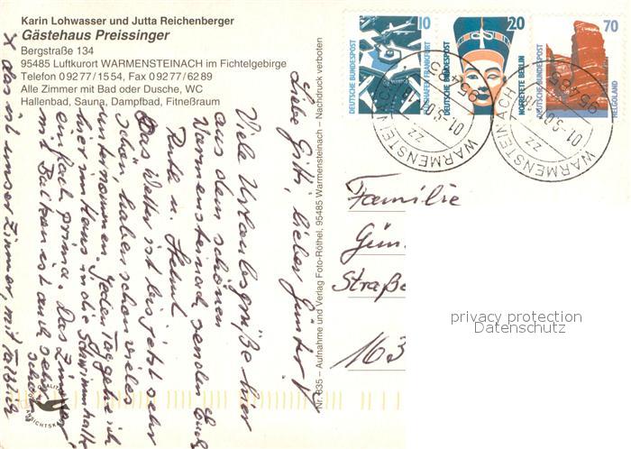 73636786 alte Postkarte Warmensteinach Gaestehaus Preissinger postalisch gelaufen Erhaltung siehe scans [FriedD77] KatCode: 11110009472198
