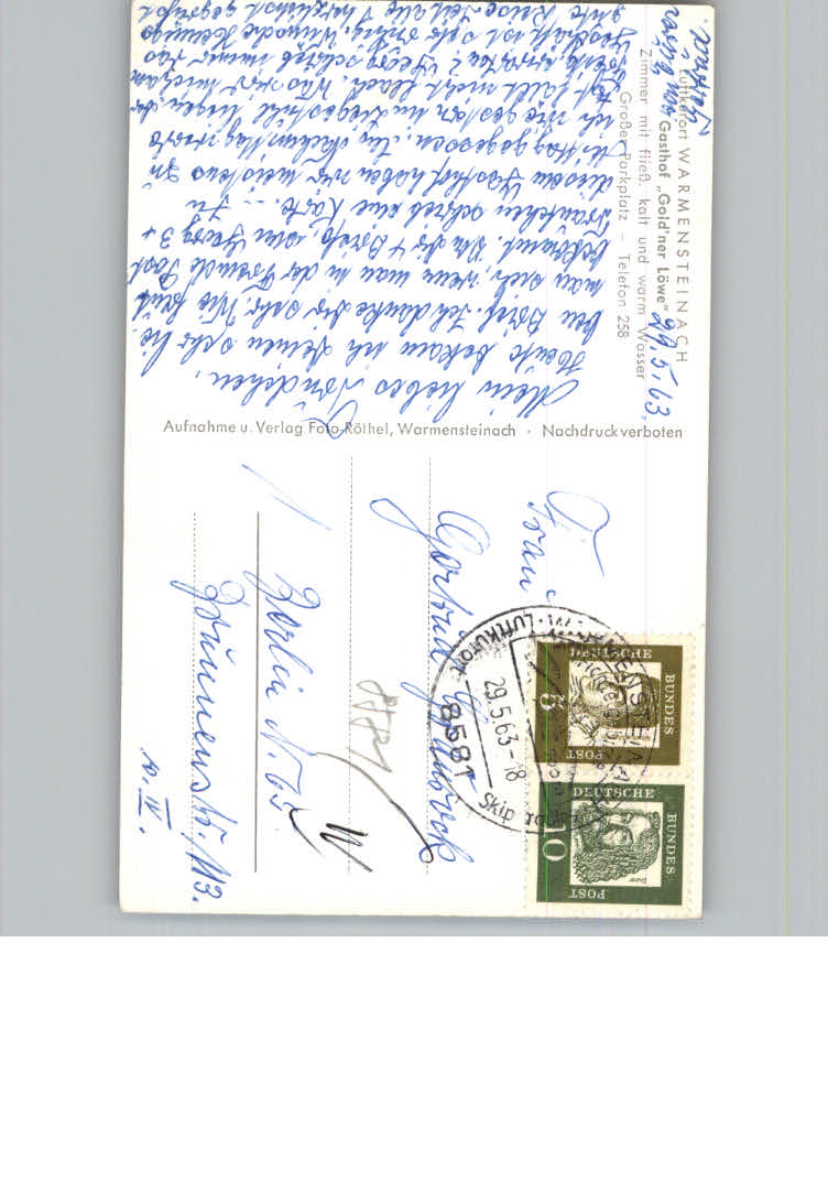 31163635 Warmensteinach Gasthof Goldener Loewe postalisch nicht gelaufen KatCode: 11110009472198