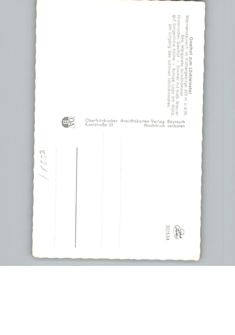 31163494 Warmensteinach Gasthof zum Loechleinstal postalisch nicht gelaufen KatCode: 11110009472198