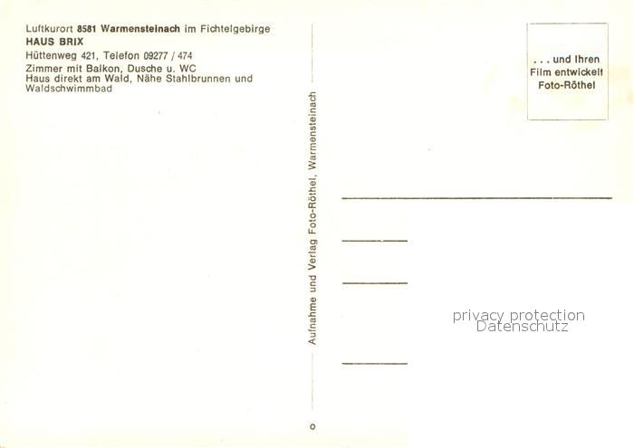 73653418 Warmensteinach Haus Brix postalisch nicht gelaufen Erhaltung siehe scans [WerneD78] KatCode: 11110009472198