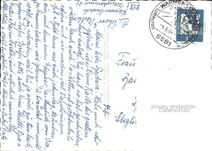 72600382 alte Postkarte Warmensteinach Hoehenluftkurort Loechleinstal Quellwasser Wasserfall Schwimmbad Asentturm Ochsenkopf postalisch gelaufen Erhaltung siehe scans [FriedD77] KatCode: 11110009472198