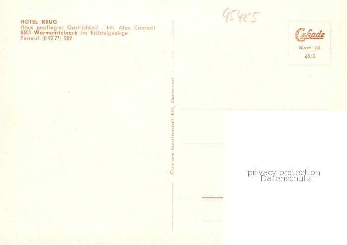 73865280 Warmensteinach Hotel Krug Blick zur Kirche postalisch nicht gelaufen Erhaltung siehe scans [FriedD77] KatCode: 11110009472198