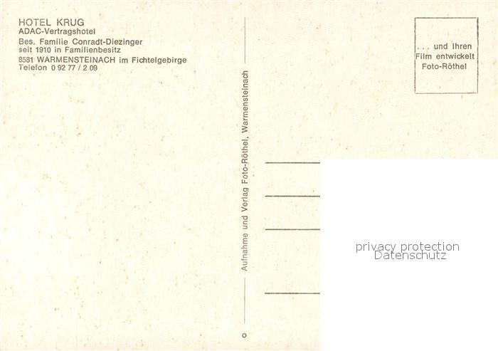 73543595 Warmensteinach Hotel Krug Gaststube Terrasse postalisch nicht gelaufen Erhaltung siehe scans [WerneD78] KatCode: 11110009472198