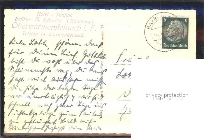 72143715 alte Postkarte Warmensteinach Hotel Pension Schrader postalisch gelaufen Erhaltung siehe scans KatCode: 11110009472198