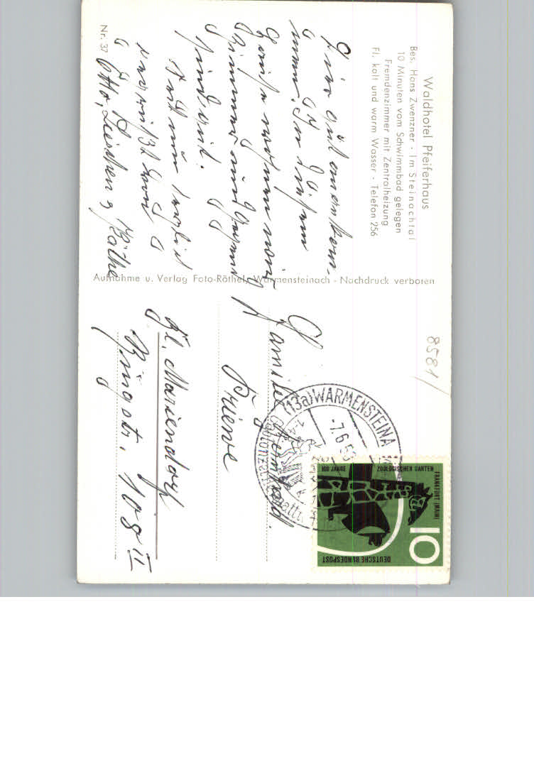31163646 Warmensteinach Hotel Pfeiferhaus postalisch nicht gelaufen KatCode: 11110009472198