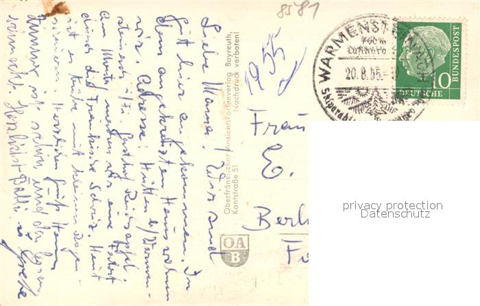 43361742 alte Postkarte Warmensteinach Huetten mit Jugendherberge postalisch gelaufen Erhaltung siehe scans [WerneD78] KatCode: 11110009472198