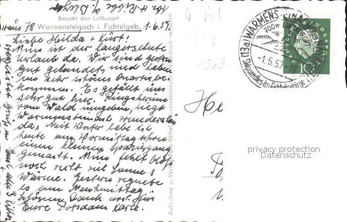 72477585 alte Postkarte Warmensteinach Kirchenpartie postalisch gelaufen Erhaltung siehe scans KatCode: 11110009472198