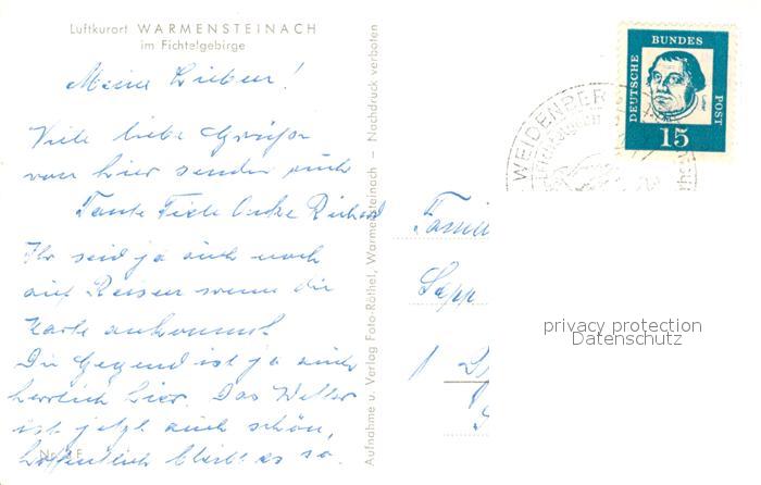 43347659 alte Postkarte Warmensteinach Kropfbachtal Panorama postalisch gelaufen Erhaltung siehe scans [WerneD78] KatCode: 11110009472198