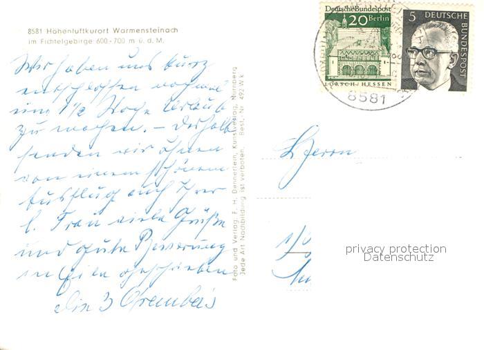 72952662 alte Postkarte Warmensteinach Landschaftspanorama Hoehenluftkurort im Fichtelgebirge postalisch gelaufen Erhaltung siehe scans [FriedD77] KatCode: 11110009472198