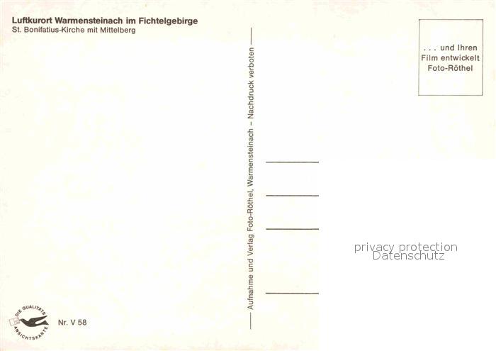 72687488 Warmensteinach Luftkurort Fichtelgebirge St Bonifatius Kirche mit Mittelberg postalisch nicht gelaufen Erhaltung siehe scans [FriedD77] KatCode: 11110009472198