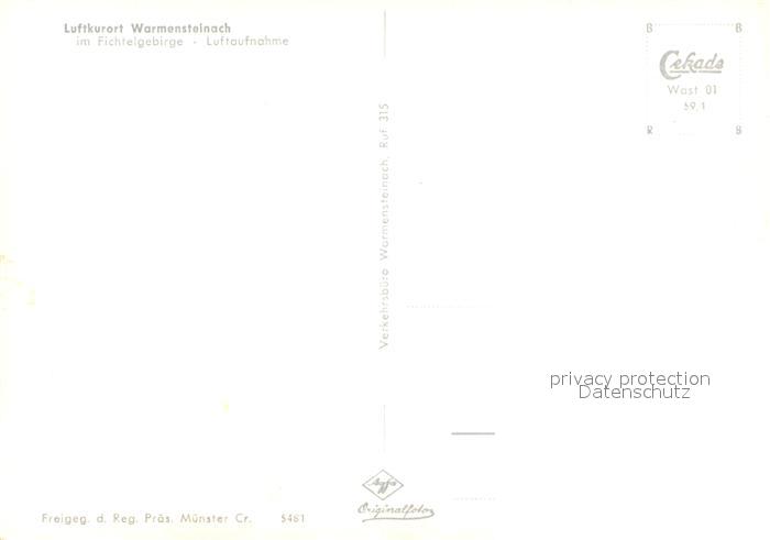 33664389 Warmensteinach Luftkurort Fliegeraufnahme postalisch nicht gelaufen Erhaltung siehe scans [FriedD77] KatCode: 11110009472198