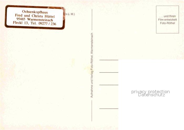 72913762 Warmensteinach Ochsenkopfhaus postalisch nicht gelaufen Erhaltung siehe scans [LiesaD40] KatCode: 11110009472198