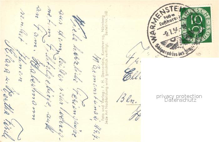 72961983 alte Postkarte Warmensteinach Panorama Hoehenluftkurort Blick vom Hoellfelsen postalisch gelaufen Erhaltung siehe scans [FriedD77] KatCode: 11110009472198