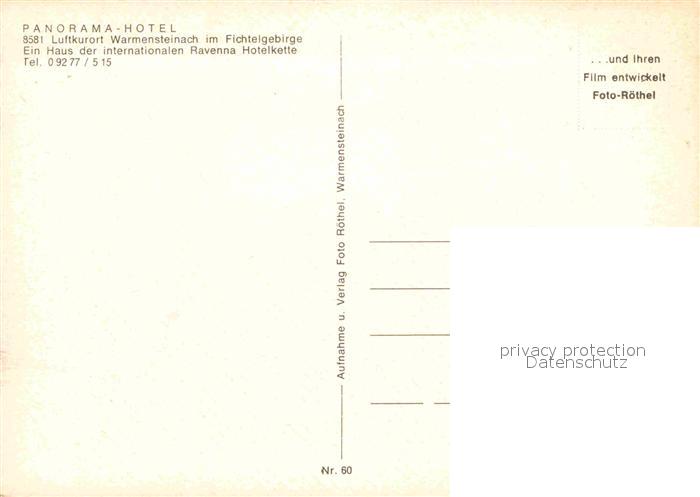 72856666 Warmensteinach Panorama Hotel postalisch nicht gelaufen Erhaltung siehe scans [LiesaD40] KatCode: 11110009472198